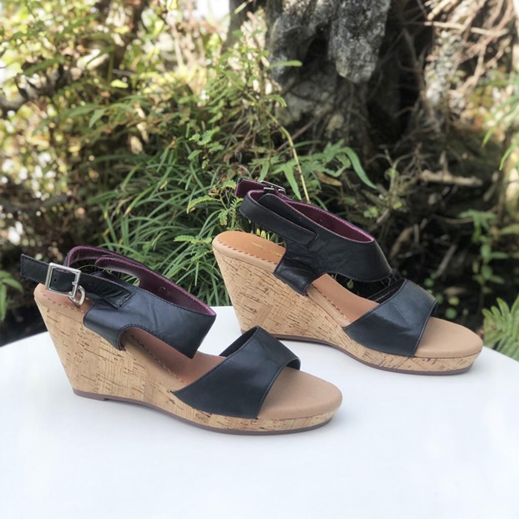 - Chiều cao dép : 9 cm - Xuất xứ: Việt Nam - Màu: đen, trắng - • Kiểu dáng mới nhất : Xăng đan nữ đế xuồng - •Chất liệu Quai : da bò