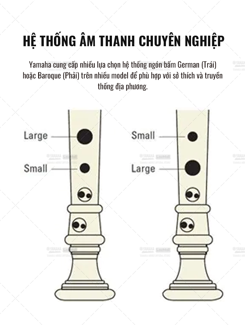 Sáo Recorder series 20 và 30 của Yamaha được thiết kế để đem đến một khởi đầu hoàn hảo cho việc giáo dục âm nhạc. Chúng được thiết kế như bạn mong đợi dựa trên việc điều khiển luồng hơi thổi dễ dàng và tính chính xác của âm sắc mà chỉ tìm thấy trên các model đắt tiền hơn. Mặc dù sáo Recorder của các nhà sản xuất khác có thể có ngoại hình tương tự, nhưng với sáo Recorder Yamaha là nhạc cụ thực sự vượt trội. Recorder luôn có sẵn với các hệ thống ngón bấm ‘German 'hoặc‘ Baroque'. Về Series 20, âm vực của chúng rất dễ chơi, chủ yếu dành cho người mới bắt đầu.