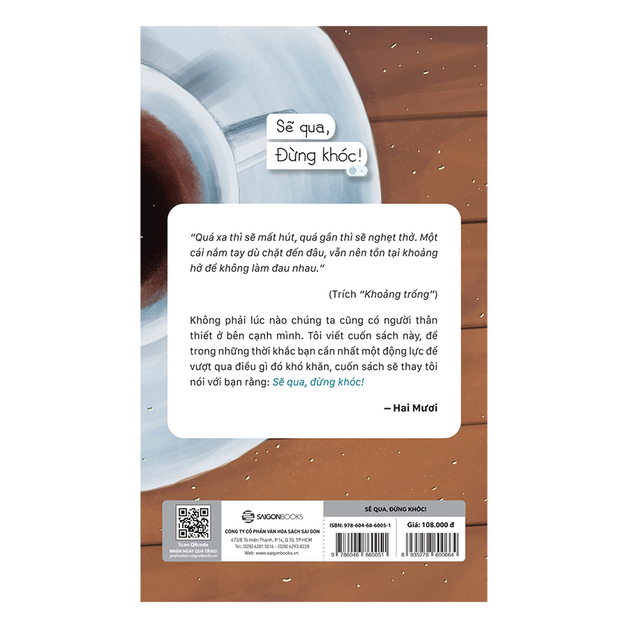 Mong rằng, khi gấp cuốn sách lại, bạn sẽ luôn có đủ can đảm để nhắc với bản thân ít nhất hai mươi lần trước mọi khó khăn, một điều thôi: Sẽ qua, đừng khóc!