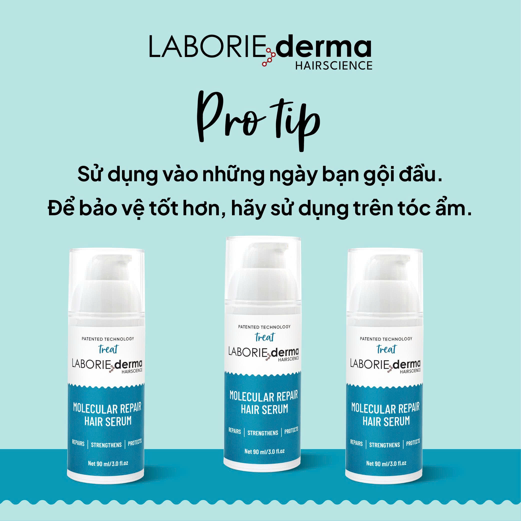 Lấy một lượng Molecular Repair Hair Serum vừa đủ, thoa đều lên thân tóc ẩm.