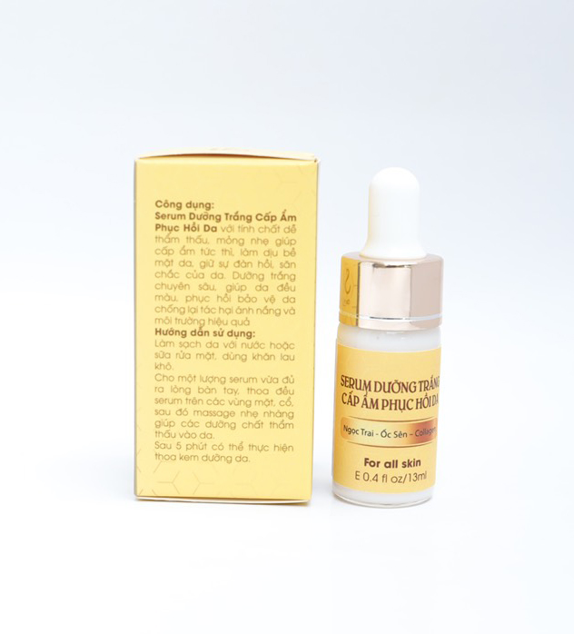 Serum dưỡng trắng cấp ẩm phục hồi da với tinh chất dễ thẩm thấu, mỏng nhẹ giúp cấp ẩm tức thì, làm dịu bề mặt da, giữ sự đàn hồi, săn chắc cho da. Dưỡng