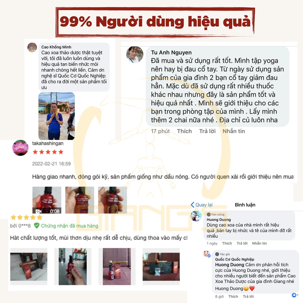 Mua tại Tiktok1. Mô tả sản phẩm - Công thức gia truyền qua nhiều thế hệ của gia đình Quốc Cơ - Quốc Nghiệp. - Với khả năng tăng cường thêm độ nóng lạnh, hỗ trợ các cơ-xương-khớp nhanh hồi phục hơn. - Sản phẩm có thời gian giữ trên da gần một giờ đồng hồ nhưng không lưu lại mùi.