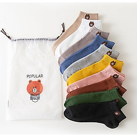 ✨Set 10 Đôi Vớ Nữ In Hình Gấu Brown Xinh Xắn (Kèm Túi Đựng Hình Gấu)