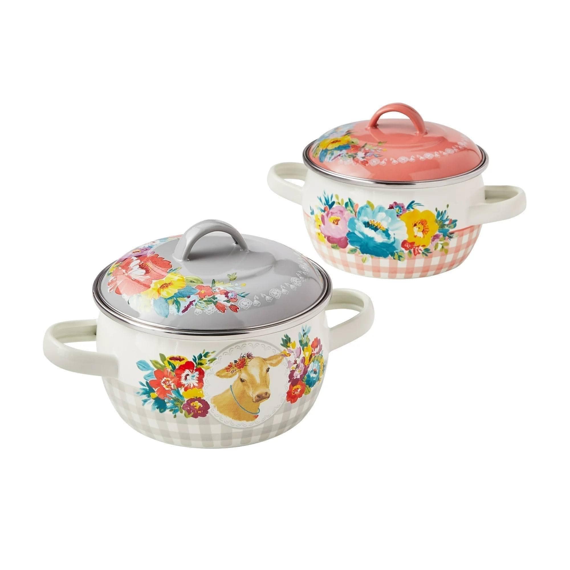 Mang chút nét duyên dáng của đồng quê vào căn bếp của bạn với sét 2 nồi tráng men The Pioneer Woman Sweet Romance 1l. Những chiếc nồi nướng kiểu Hà Lan mini này mang