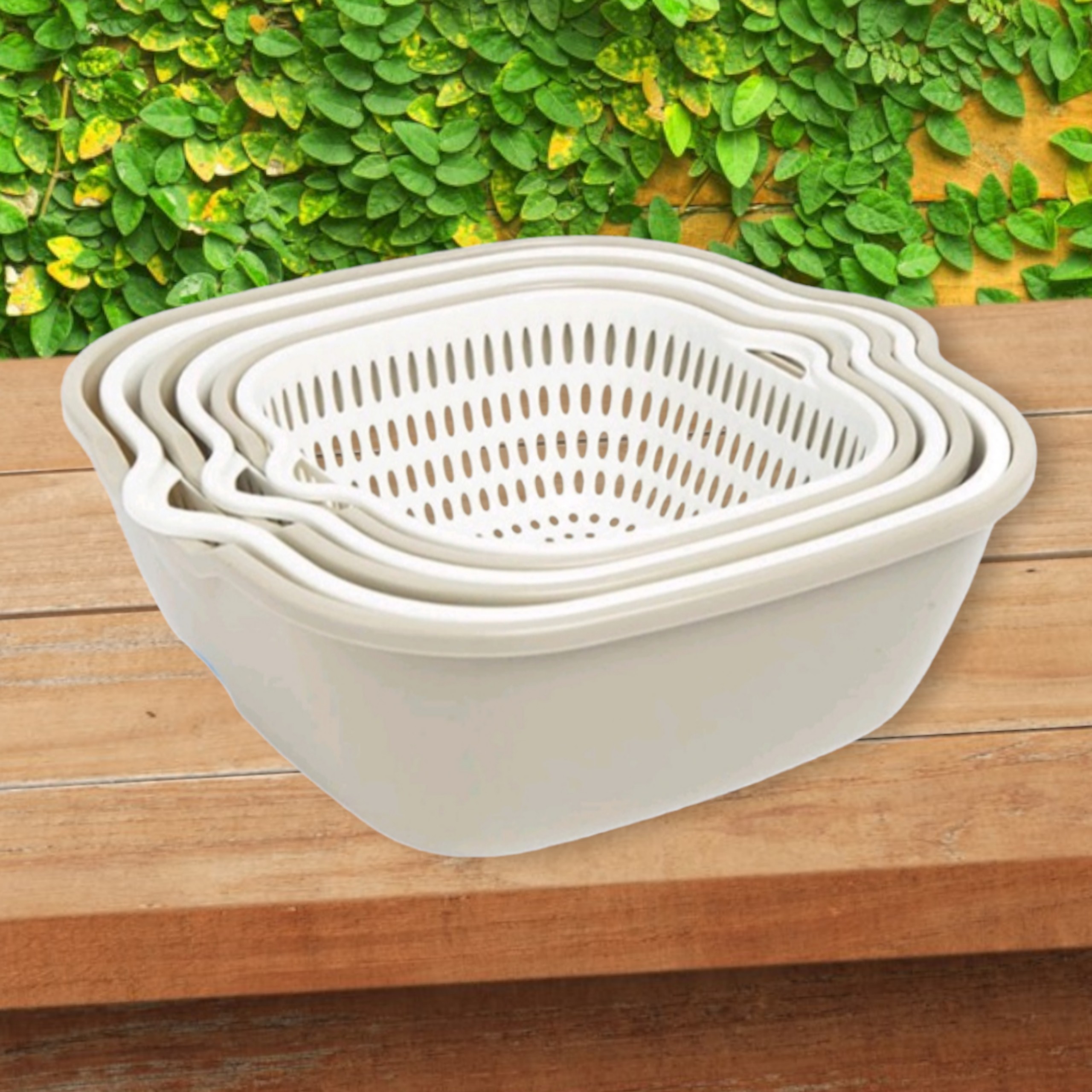 Bộ 3 Rổ Nhựa Kèm Chậu Trong Suốt Tiện Lợi