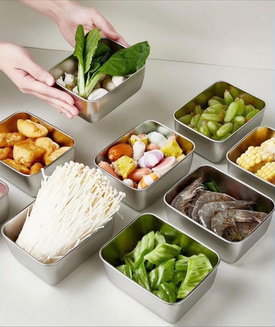 ✨SET 5 HỘP INOX SUS304 ĐỰNG THỰC PHẨM CÓ NẮP ĐẬY HÀNG DÀY ĐẸP