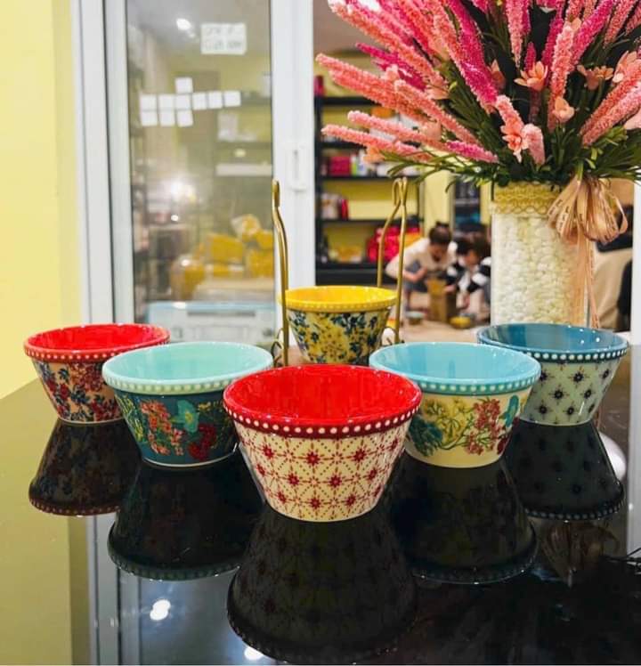 Bát được làm bằng gốm sứ cao cấp và làm thủ công để có độ nhẵn bóng hoàn hảo. Nhờ có lớp tráng men nên chúng rất dễ lau chùi cũng như chống trầy xước,
