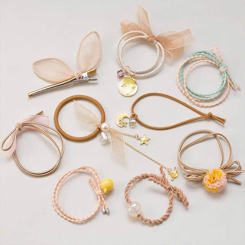 ✨Sét 9 dây buộc tóc và kẹp xinh xắn, có kèm túi lưới phong cách Hàn Quốc, giao màu ngẫu nhiên
