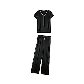 Mua tại TiktokSet áo quần lụa cao cấp acetate Mã: SQZLG002 Màu: Đen Chất liệu: Acetate Vòng một 94cm, lưng eo chun đàn hồi