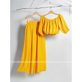 ღ THÔNG TIN SẢN PHẨM: Tên sản phẩm: Set áo quần vàng trễ vai Màu sắc: vàng Chất liệu: chéo dày Chi tiết sản phẩm: không lót, không túi. Thông