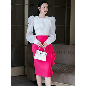 ✨Set áo voan trắng váy hồng sen NGADO , set áo kèm chân váy , set áo váy Nữ