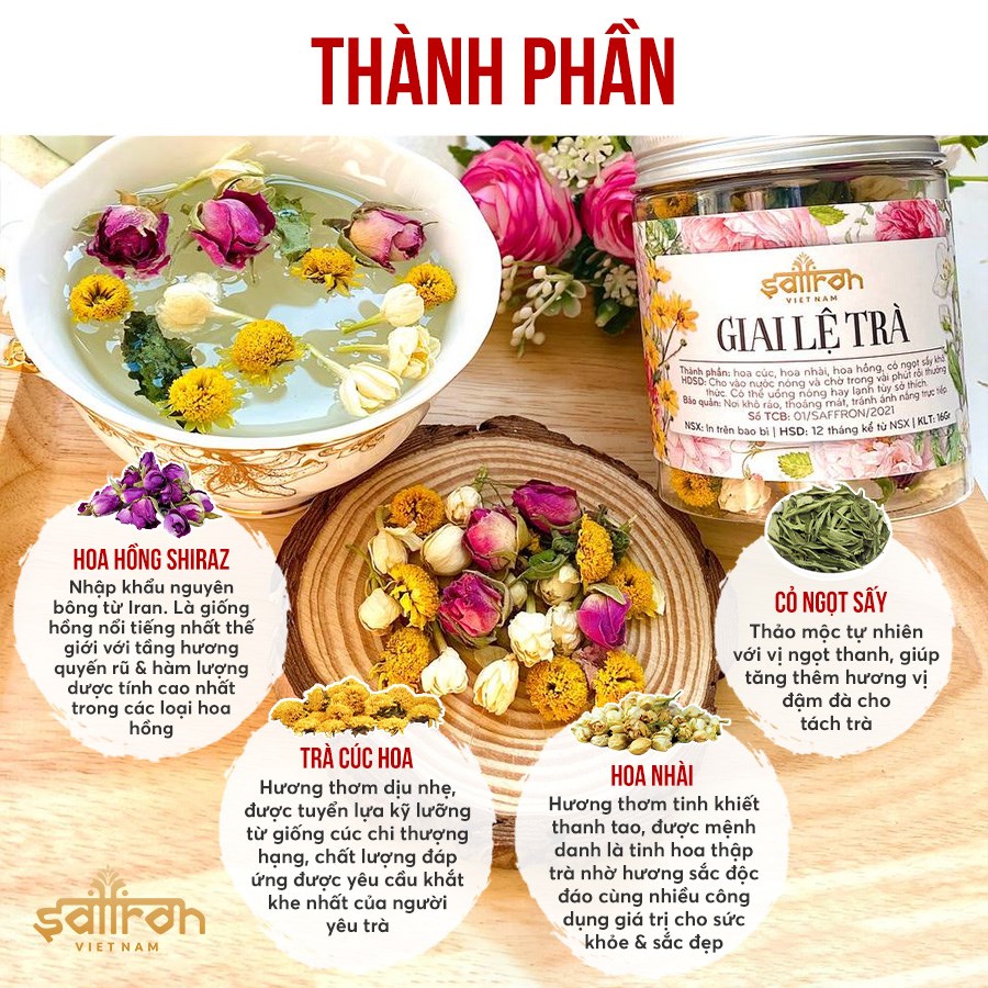 Set quà là sự kết hợp hoàn hảo của hương vị Saffron với trà hoa. Saffron thể hiện sự sang trọng, quý hiếm phù hợp làm quà tặng doanh nghiệp, tặng nhân viên, tặng bạn bè, khách hàng… Hơn nữa saffron thể hiện được sự quan tâm sức khỏe của bạn dành cho họ.