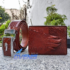 Set cá sấu nâu [Ví bàn tay + Nịt gai lưng]