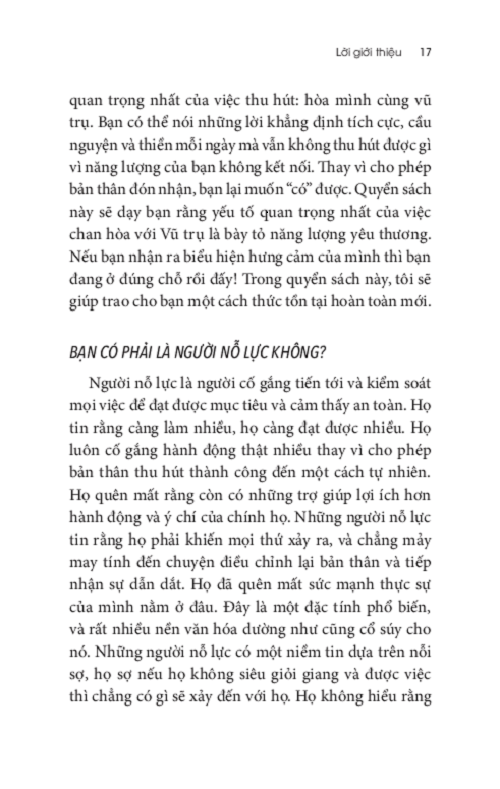 Làm sao để đạt được bất kỳ thứ gì những thứ chúng ta mong muốn? Đồng tác giả với tác phẩm Từ Bỏ Phán Xét – Để sống cuộc đời tươi đẹp hơn. Tác giả hướng dẫn bạn đọc những phương pháp và cách thức rèn luyện tinh thần cô đã sáng tạo ra, thực hành và đạt kết quả mỹ mãn trên cả mong đợi. Các bài tập trong cuốn sách này sẽ giúp bạn sống chậm lại, tĩnh lặng và mở lòng đón nhận hơn nữa, đồng thời xây dựng cảm giác bản thân xứng đáng với những điều tốt đẹp. Tác giả hướng dẫn bạn thiền định và cầu nguyện để cảm thấy an toàn và bắt đầu đón nhận những điều kỳ diệu một cách tự nhiên. Bằng cách thay đổi tư duy và góc nhìn cuộc sống, thả lỏng và không thao túng, bỏ đi thói phán xét, và những thói quen xấu trong quá khứ, chúng ta sẽ thu hút được những điều tốt đẹp đến một cách tự nhiên và không phải sống trong những chuỗi ngày mệt nhoài nỗ lực. Đồng thời, những thông điệp của Gabrielle cũng giúp độc giả củng cố niềm tin vào cuộc sống, vào con người và có đức tin vào Vũ trụ rộng lớn với nhiều điều huyền diệu vượt ngoài sự hiểu biết của nhân loại.