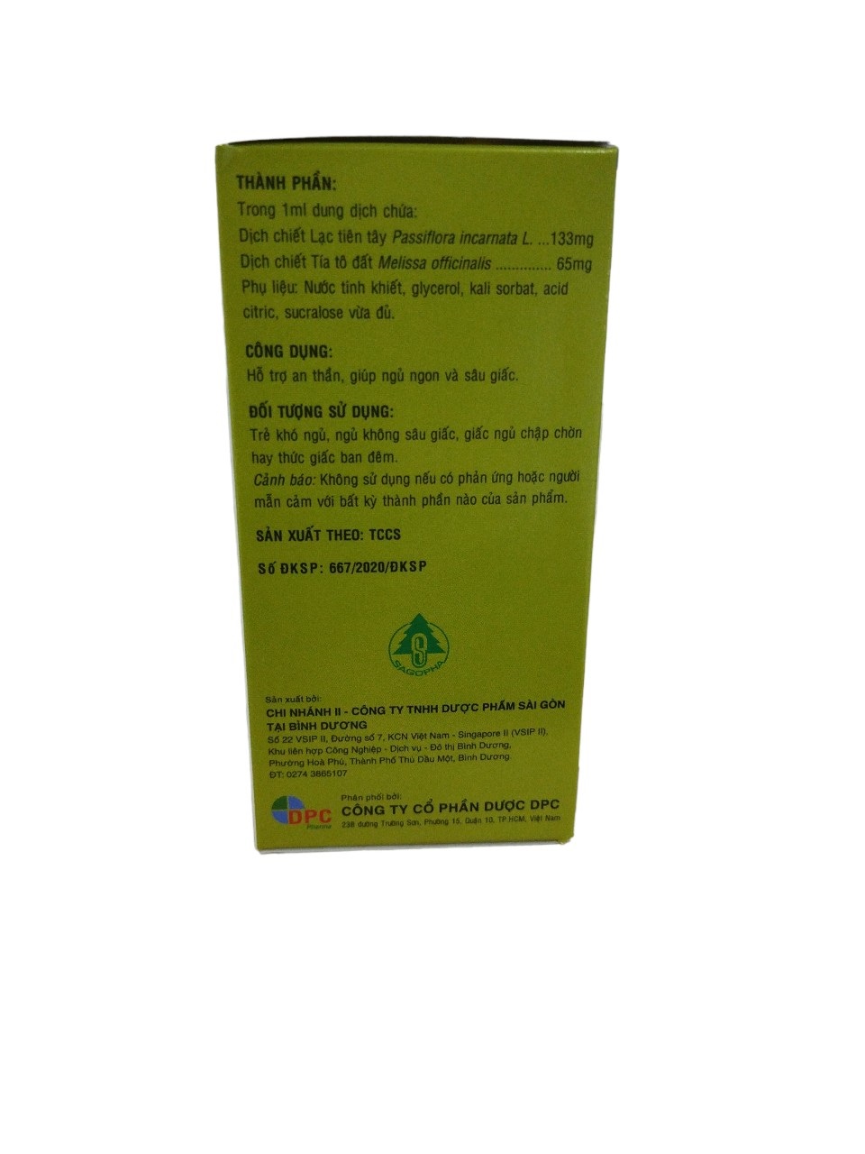 - Liệu trình sử dụng tối thiếu 1 tháng, có thể kéo dài tới 3 tháng ĐỐI TƯỢNG SỬ DỤNG: Trẻ khó ngủ, ngủ không sâu giấc, giấc ngủ chập chờn, hay thức giấc ban đêm. CẢNH BÁO: Không sử dụng nếu có phản ứng hoặc người mẫn cảm với bất kỳ thành phần nào của sản phẩm THÔNG TIN CHUNG