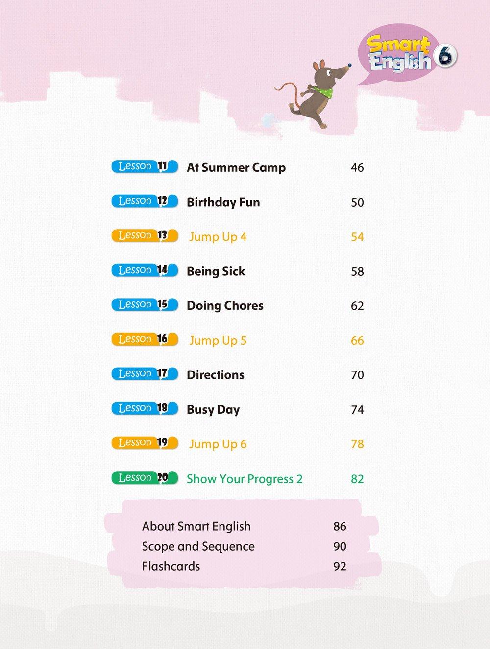 Smart English is a fun and easy English course expertly designed for elementary school students. The innovative six-level series is packed full of exciting features to help students learn in a communicative way. English is introduced in the most natural settings possible, and students are motivated to practice the language day after day. The accompanying components provide teachers with a wealth of additional material to maximize student participation and enjoyment in the classroom. It also lays solid foundations for further language learning once it has been completed.