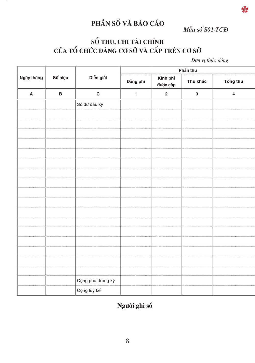 Sổ Chi Hoạt Động Công Tác Đảng Sổ thu, chi tài chính của tổ chức đảng các cấp dùng cho chi bộ cơ sở, đảng bộ cơ sở xã, phường, thị trấn; chi bộ cơ