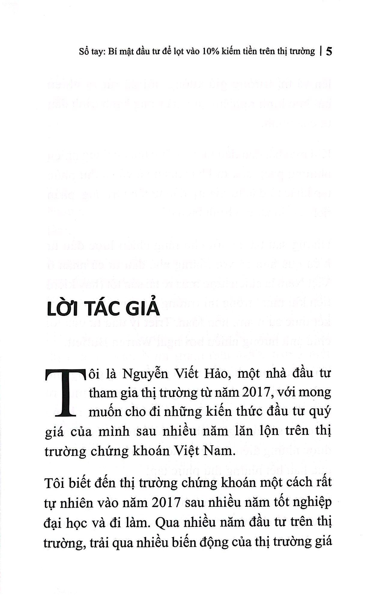 Cuốn sách “Sổ tay: Bí mật đầu tư để lọt vào 10% kiếm tiền trên thị trường - Chiến lược phân bổ vốn đỉnh cao và làm chủ tâm lý (tập 1)” là một cuốn sách viết về chiến lược đầu tư chứng khoán bằng kinh nghiệm thực tế của tác giả. Trong cuốn sách, tác giả đã xoáy sâu và tập trung vào chiến lược mua rẻ tài sản tốt (hay kiếm tiền khi mua) trong thị trường bị định giá rẻ, thị trường hỗn loạn, bán tháo do bị ảnh hưởng bởi suy thoái kinh tế. Đây là cuốn sách “cầm tay chỉ việc”, sẽ giúp bạn rút ngắn nhiều năm trên thị trường, phù hợp cho những nhà đầu tư mới và cả những nhà đầu tư lâu năm.
