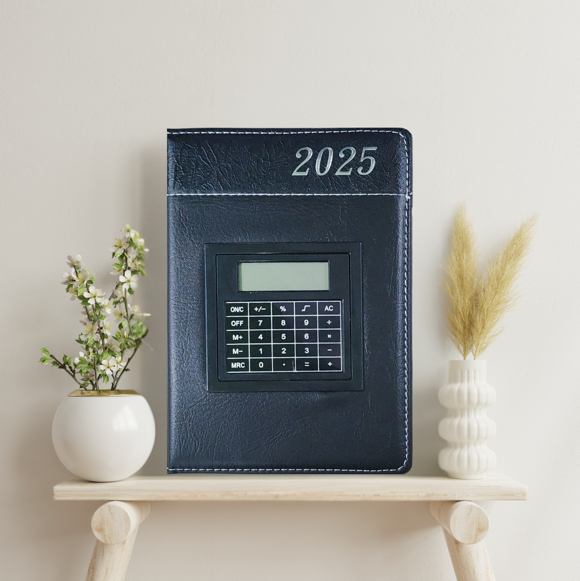 Sổ da kèm máy tính lập kế hoạch cho năm 2025. Sổ da không chỉ là công cụ mà còn là phụ kiện thể hiện phong cách cá nhân. Thích hợp cho cả môi trường