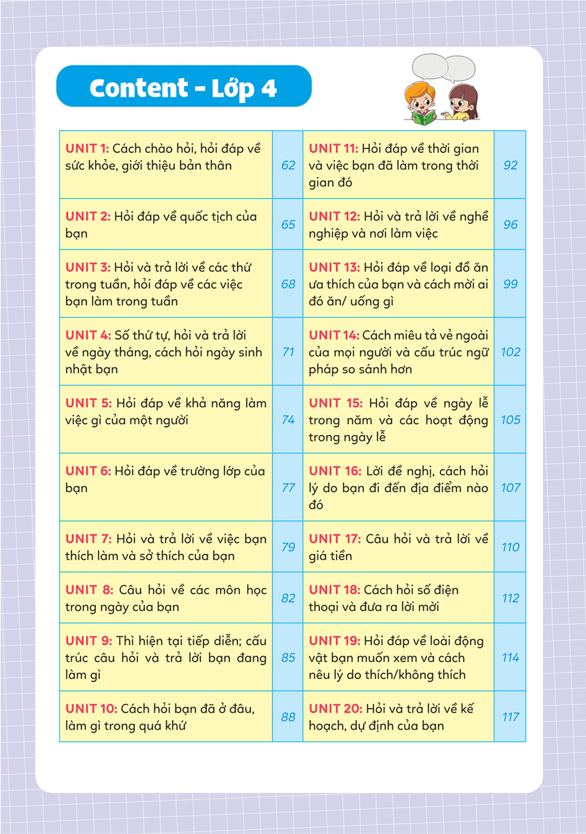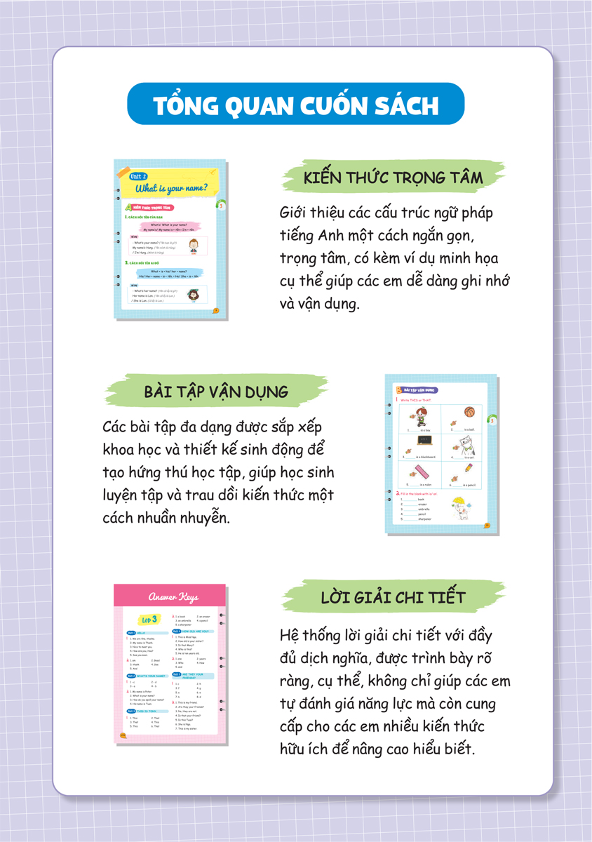 - Sách hệ thống các kiến thức trọng tâm của chương trình học Cuốn sách giới thiệu các cấu trúc ngữ pháp tiếng Anh một cách ngắn gọn, trọng tâm, có kèm ví dụ minh họa cụ thể giúp các em dễ dàng ghi nhớ và vận dụng.