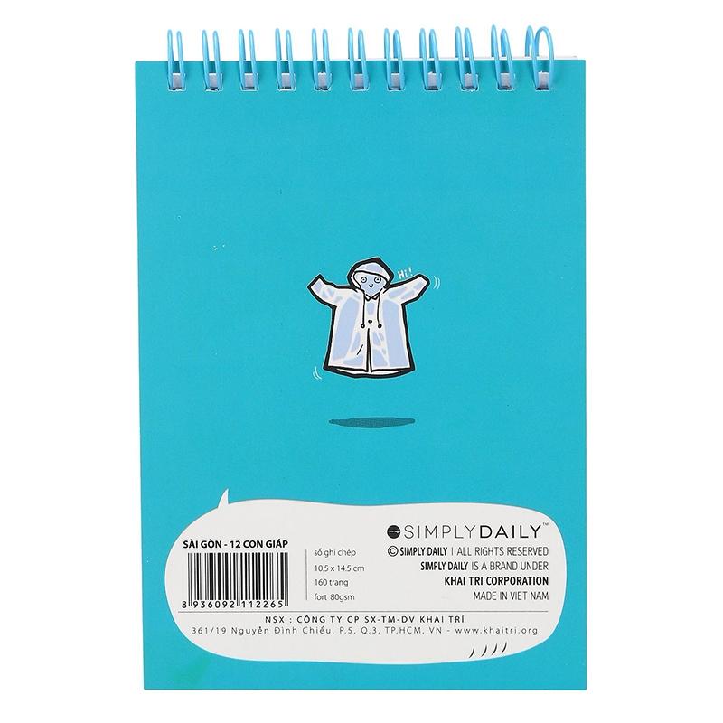 Sổ Tay Sài Gòn 12 Con Giáp - Mua Áo Mưa Nha có kích thước nhỏ gọn, tiện lợi, là sản phẩm thích hợp cho nhiều đối tượng, dùng để ghi chép hàng ngày. Bìa sổ in hình hoạt hình lạ mắt cùng màu sắc tươi sáng nổi bật, đẹp mắt. Chất liệu giấy Fort 80 gsm dày dặn, được in dòng kẻ sẵn tiện lợi cho việc ghi chép thông tin.