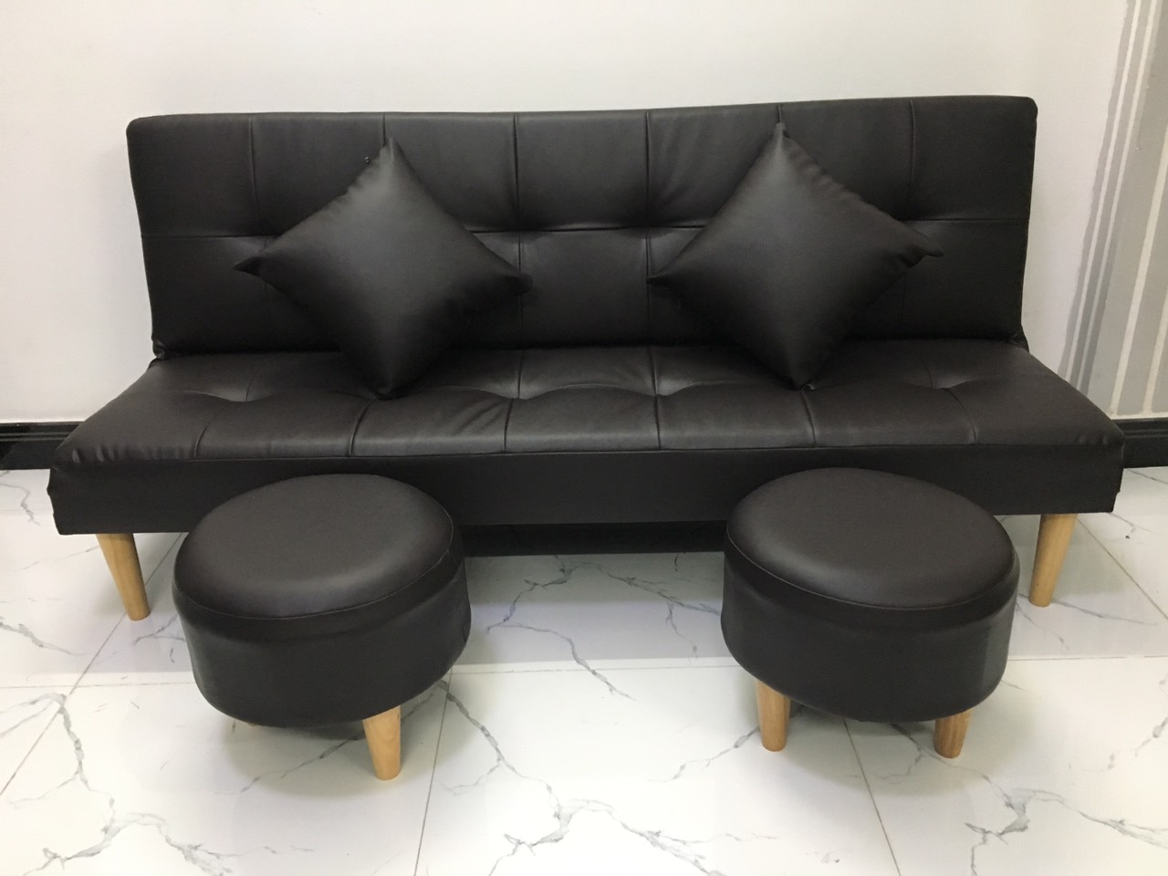 ✨Sofa bed, sofa giường màu đen và 2 đôn tròn SB14