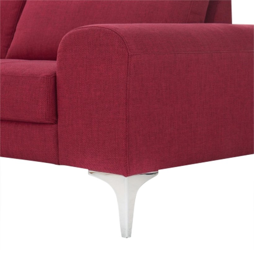 - Sofa góc L-Concept Juno Sofa 289 x 151 x 85 cm (Đỏ mẫu đơn) được bọc lớp vải bố kháng khuẩn cao cấp, mềm mịn và thoáng mát. Mút D40 kháng khuẩn với độ bền cao, tính năng đàn hồi tốt, mang đến cảm giác êm ái, dễ chịu khi ngồi.- Phần khung được làm bằng gỗ đã thông qua quy trình xử lý chống ẩm mốc, mối mọt. Khả năng chịu lực tốt, không bị biến dạng, cong vênh, cho thời gian sử dụng lâu dài.- Chân ghế bằng inox có độ chắc chắn cao, chịu lực tốt, đảm bảo an toàn cho người dùng.- Kiểu dáng sofa góc dài với phần lưng tựa là những chiếc gối rời, giúp bạn có thể tựa đầu hoặc dùng làm gối nằm nghỉ trên sofa sau một ngày làm việc mệt mỏi. Các góc cạnh được thiết kế bo tròn giúp tăng thêm nét mềm mại, tinh tế trong thiết kế.- Bạn có thể đặt sofa trong phòng khách, văn phòng làm việc, phòng tiếp khách của công Với kiểu dáng đẹp mắt cùng màu sắc tươi sáng, sản phẩm góp phần mang đến phong cách sang trọng, hiện đại cho không gian sống.