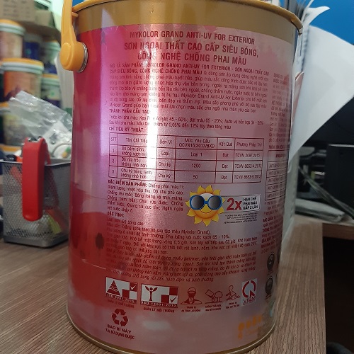 Mua tại TiktokMykolor Grand Anti – UV For Exterior là sản phẩm sơn mới nhất của nhãn hiệu sơn Mykolor Grand dành riêng cho ngoại thất. Sơn ngoại thất cao cấp với màng sơn siêu bóng kết hợp thêm công nghệ chống phai màu chắc chắn sẽ làm khuynh đảo thị trường sơn Việt trong thời gian tới. Lý do sử dụng công nghệ chống phai màu sơn Bề mặt tường ngoại thất thường chịu ảnh liên tục của nắng, mưa cùng các tác động khác nên tuổi thọ lớp sơn bị chi phối rất lớn. Nên vậy bề mặt tường ngoài nhà thường bị phai màu nhanh chóng hơn. Đặc tính sản phẩm