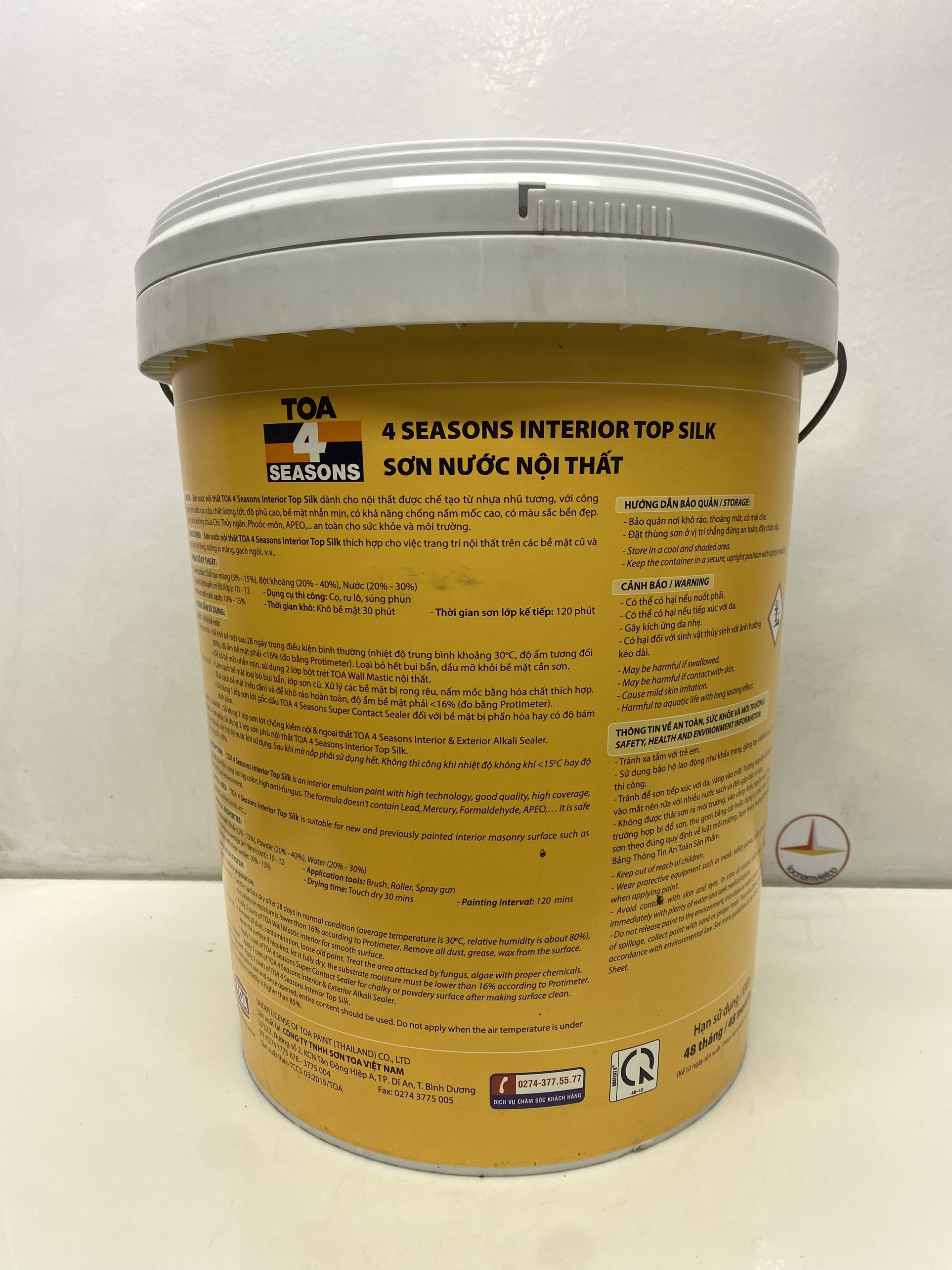 Sơn nước Toa 4 Season Top Silk dễ lau chùi nội thất NHIỀU MÀU _18L Sơn Nước nội thất Toa 4 Season top silk dễ lau chùi được chế tạo từ nhựa nhũ tương, với
