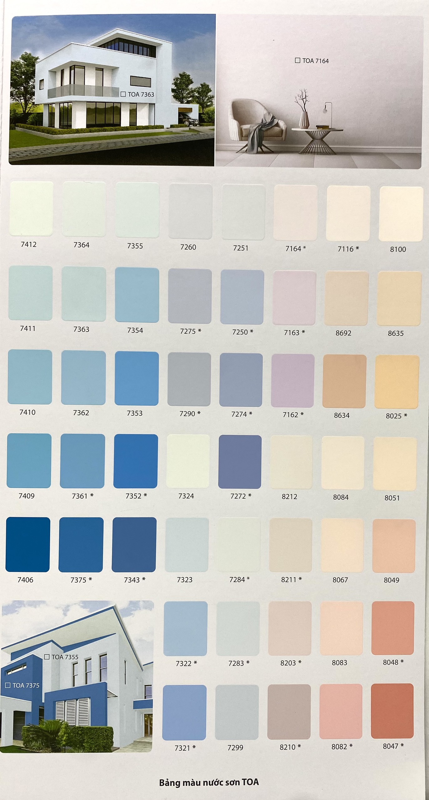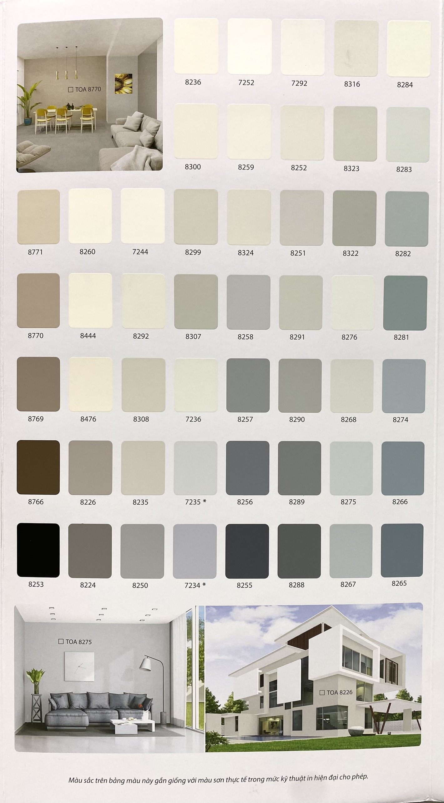 • Màu sắc: Nhiều màu Theo bảng màu và quạt màu TOA