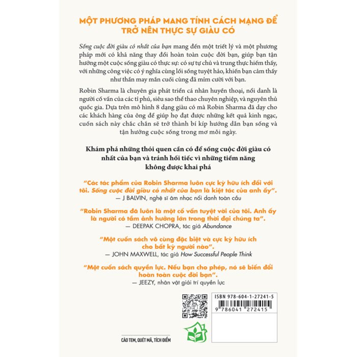 Bằng những công cụ thực tế và chiến thuật hữu ích, cuốn sách vừa đưa ra triết lý, vừa chỉ ra phương pháp để tận hưởng một một sống giàu có thực sự: tràn đầy sức mạnh cá nhân, lòng trung thực hiếm thấy, công việc thỏa mãn, và một lối sống khiến bạn cảm thấy rằng may mắn cuối cùng cũng đã mỉm cười với bạn.