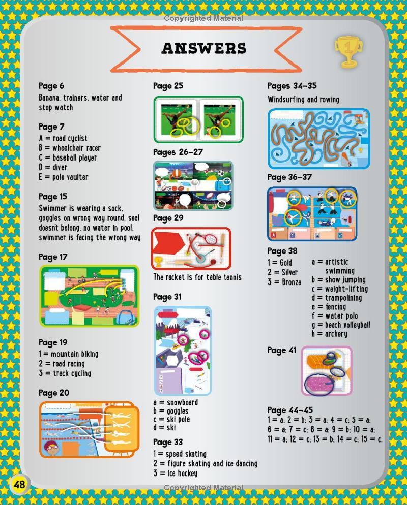 Simple tasks will test your skills and reinforce the information you read in the book. Do you know where your Achilles heel is? Can you check your pulse? How do you train and prepare for an important competition? Take a look inside to find out!