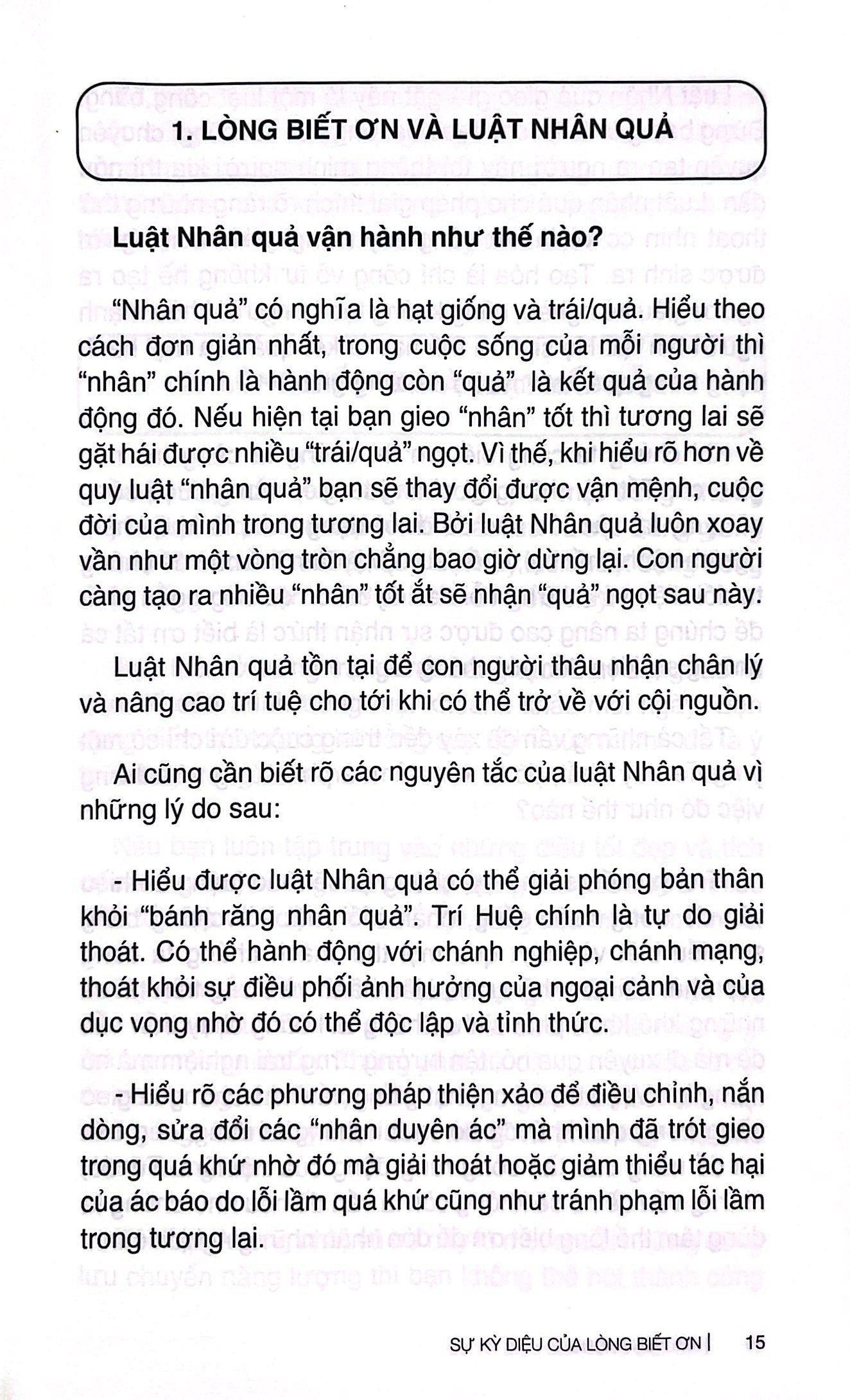“Sự kỳ diệu của lòng biết ơn” là cuốn cẩm nang của những người đang u mê và lạc lối, của những người đang trên hành trình định hướng chân - thiện - mĩ cuộc đời.