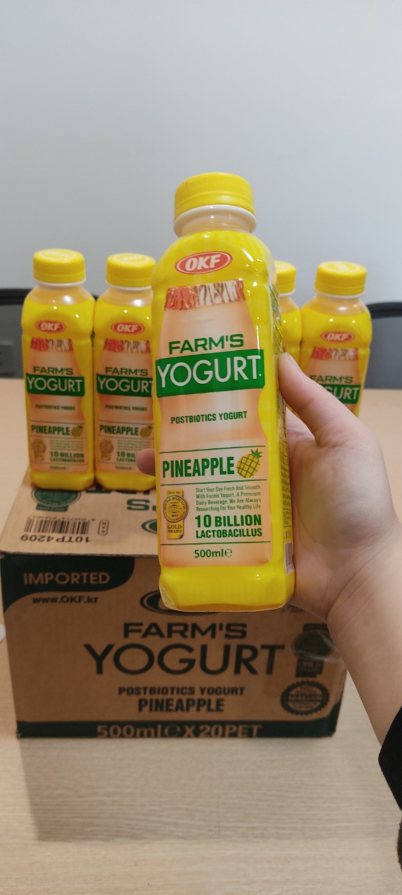 Tên sản phẩm: Sữa chua uống Farm's vị dứa 500ml - Đây là sản phẩm của Hàn Quốc - Sản phẩm sữa chua uống độc đáo của OKF, không chỉ thơm ngon mà còn tốt