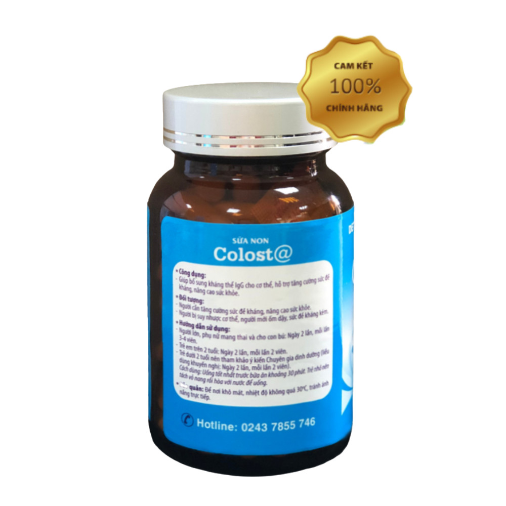 - Mỗi tháng dùng khoảng 1 hộp sữa non Colost@ loại 100v hoặc 150v (Xem chi tiết hướng dẫn sử dụng trên nhãn sản phẩm để biết chính xác liều dùng và cách dùng) Thành phần