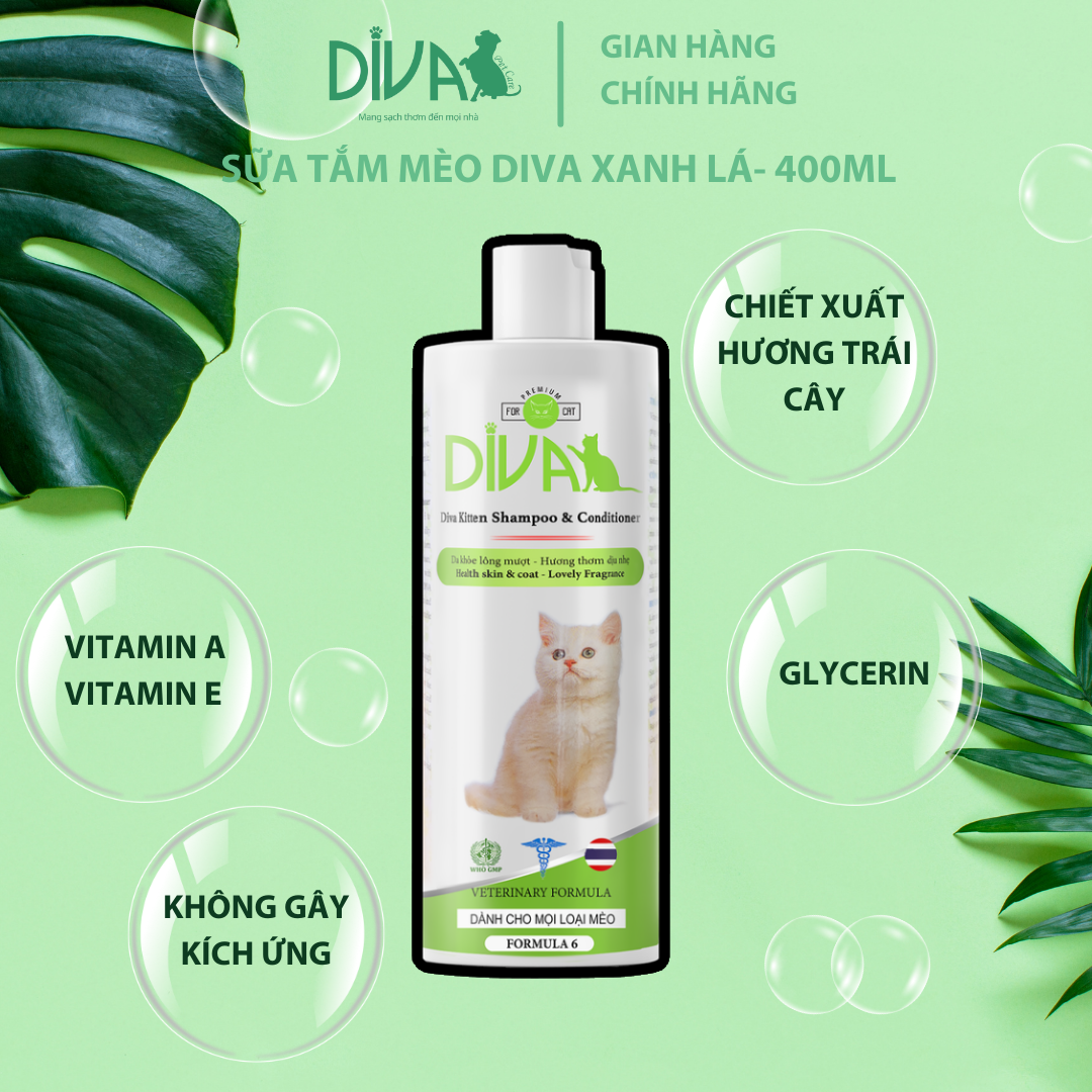 ✨SỮA TẮM MÈO DIVA XANH LÁ 400ML (DIVA FORMULA 6)