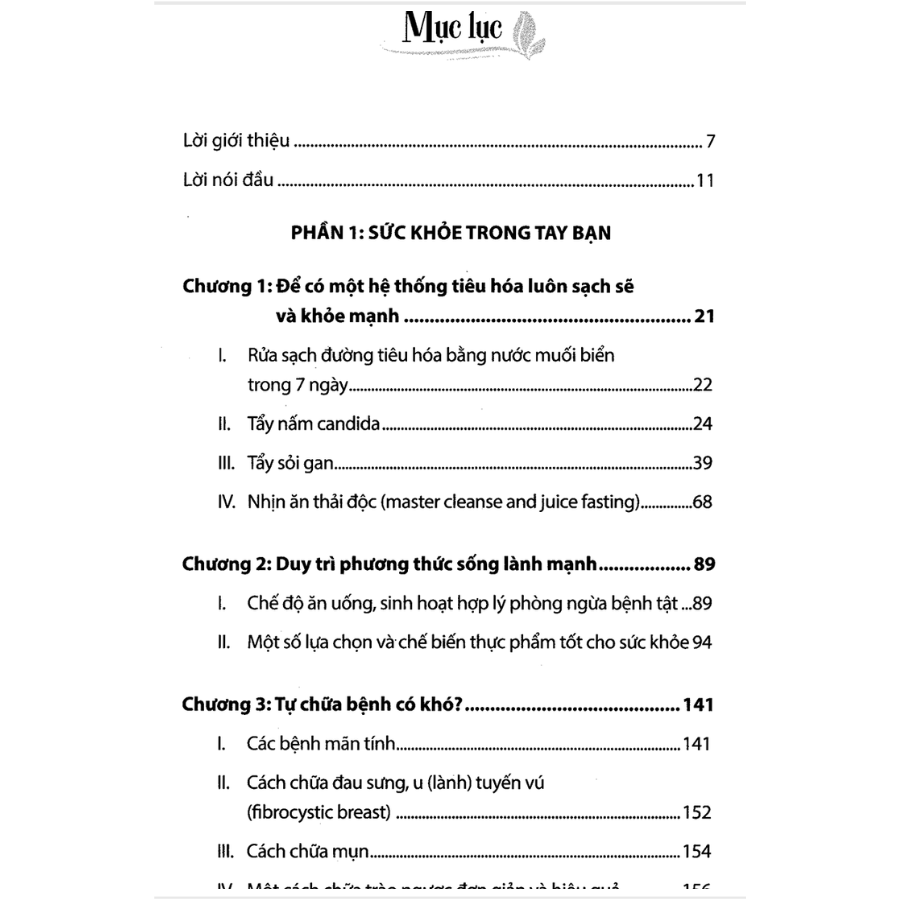 Một cuốn sách với rất nhiều phương pháp chăm sóc sức khỏe, phòng chữa bệnh theo cách tự nhiên, mà tác giả cuốn sách đã tự mình tìm tòi, trải nghiệm, áp dụng cho bản thân, gia đình, bạn bè trong suốt hơn 15 năm qua.