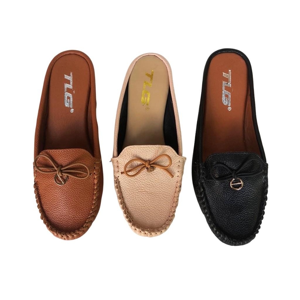 Giày Sục Nữ Giày Cao Gót 3Cm Da Bò Thật Siêu Mềm Cao Cấp Evelynv 3P2916 (Đen)