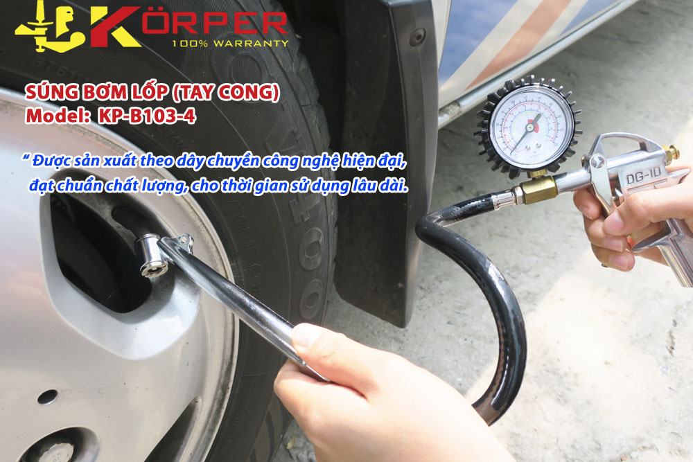 - Súng bơm lốp Korper KP-B103-4 sở hữu nhiều tính năng hữu ích, đồng thời chất lượng cũng như tuổi thọ khá ổn, mang đến sự hài lòng cho người tiêu dùng hiện đại. Súng bơm lốp chuyên dụng dành cho xe máy, xe hơi... kể cả xe đạp. ƯU ĐIỂM NỔI BẬT CỦA SÚNG BƠM LỐP KORPER: