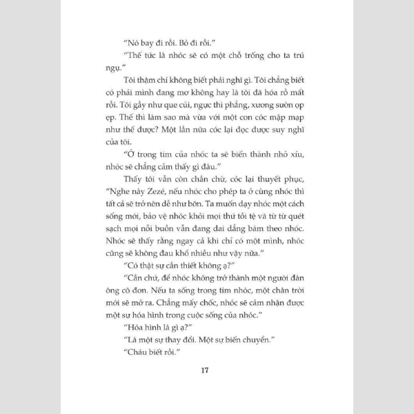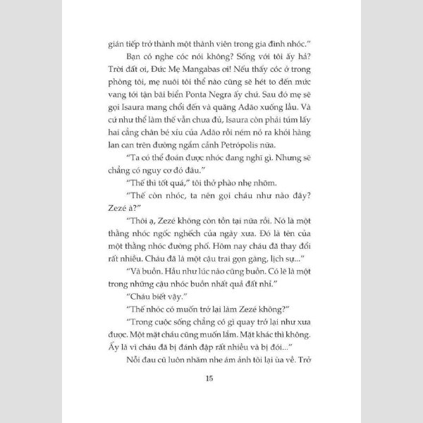 Nhưng, may thay, Zezé đã tìm được những người bạn mới – cả ở đời thực lẫn trong tưởng tượng – luôn thấu hiểu và sát cánh bên cậu, cùng cậu đi qua hết thày những niềm vui cùng nỗi buồn, những khổ sở, thất vọng, những phiêu lưu mạo hiểm, giúp cậu đối thoại với cuộc sống muôn màu muôn vẻ, với nội tâm đầy mâu thuẫn và đồng thời với cả nỗi buồn thương sâu thẳm trong tâm hồn.