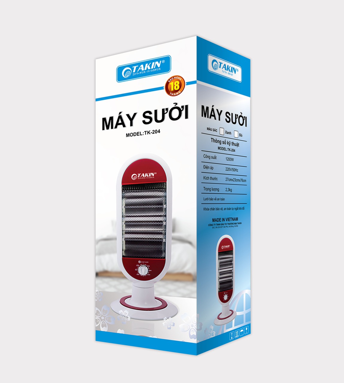 Sưởi Điện Hồng Ngoại TAKIN TK-204 - Màu Ngẫu Nhiên - Hàng Chính Hãng có thiết kế sang trọng hơn, kiểu dáng hiện đại và bắt mắt, nhỏ gọn tiết kiệm diện tích, phù hợp với mọi không gian như phòng khách, phòng ngủ,