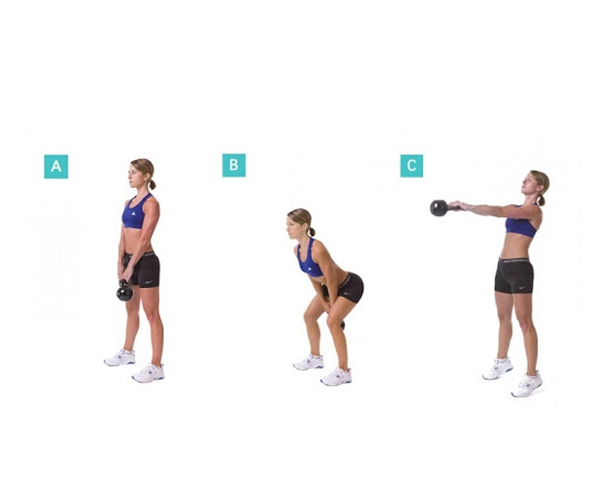 - Trong động tác 1 này, người tập đứng ở tư thế hai bàn chân rộng hơn hông một chút và giữ tạ kettlebell bằng hai tay trên vai. Đẩy và hạ hông ra sau vào tư thế ngồi xổm Cùng lúc, đẩy gót chân vào tư thế đứng và đẩy thẳng cánh tay lên quá đầu Sau đó, người tập sẽ ngồi xổm khi hạ tạ xuống vai trái .