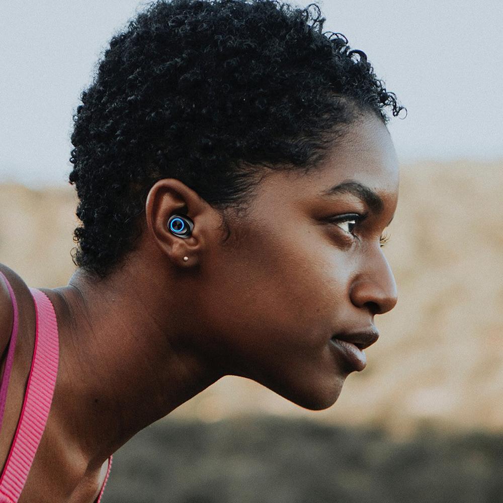 4.3g lightweight and mini size fit well to your ear canal and provide you long time wearing comfort. It guarantees stability when doing sports. With charging box, easy to store and carry anywhere.