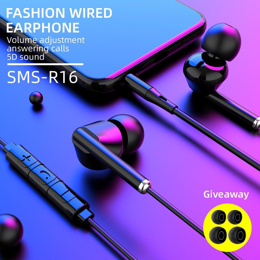 ✨Tai nghe điện thoại Ham mer R16 Chân cắm 3.5ly dây dài 1.2m âm thanh trầm đa năng, Hàng chính hãng
