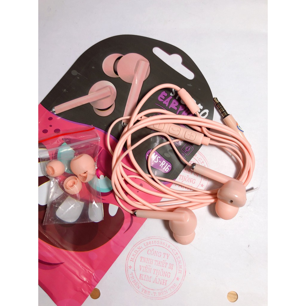 Tai nghe điện thoại R16 dây dài 1.2m với âm thanh trầm đa năng - Chân cắm 3.5ly có micr, jack 3.5ly, dây dài 1.2m Điều chỉnh âm lượng Có mic đàm thoại -box như hình Tương thích: tất cả các Smartphone Android & iOS sử dụng tai nghe Jack 3.5mm Hàng chính hãng nhập cty Phồn Vinh