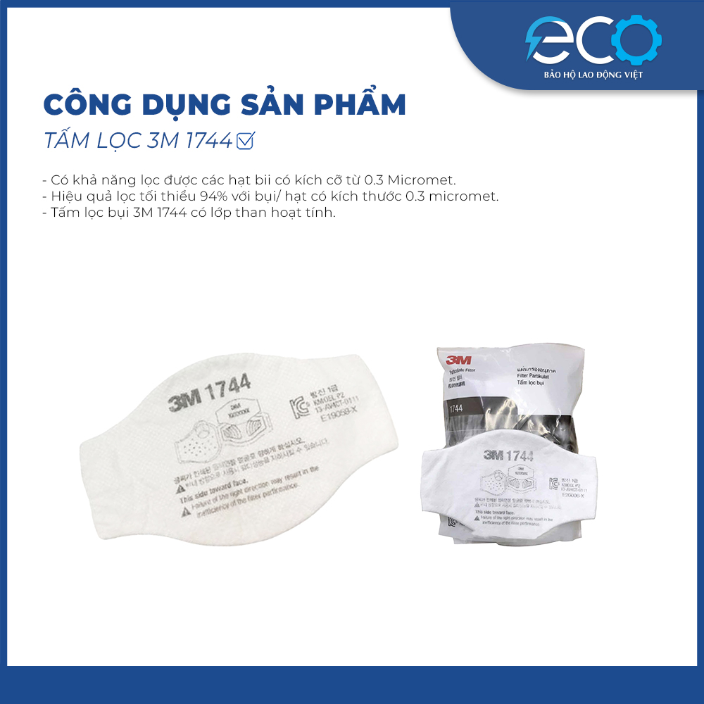 - Tấm lọc bụi 3M 1744 đi kèm với nắp giữ phin lọc bằng nhựa mã 1700 của 3M, tạo thành một hệ thống hoàn chỉnh để bảo vệ hệ hô hấp.