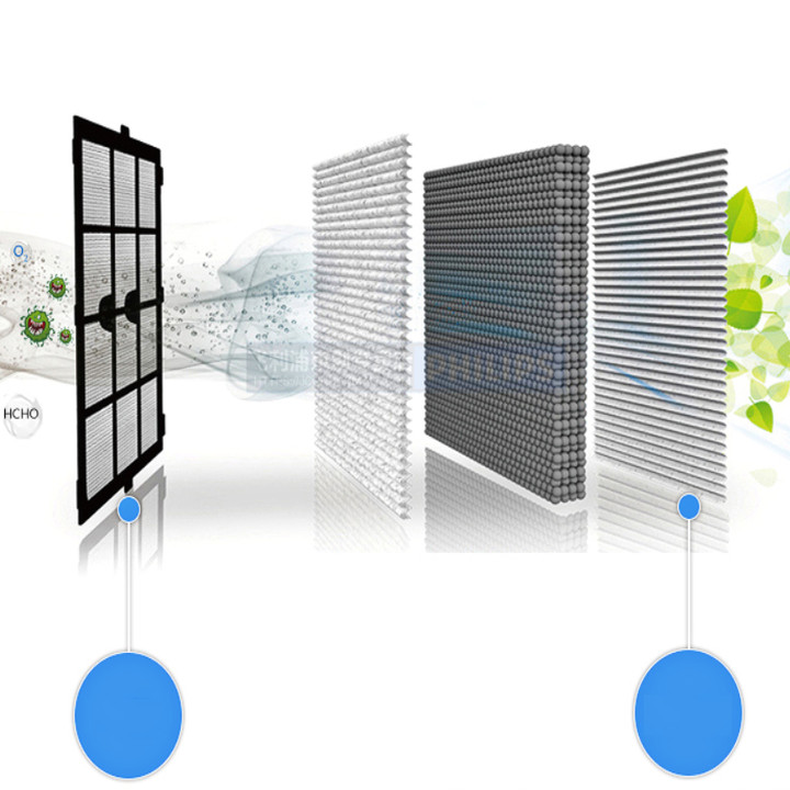 - Tấm lọc giúp giảm lượng hơi TVOC xuống còn 0.01mg/m3 trong không khí nhờ vào than dừa hoạt tính trong tấm lọc Loại bỏ hiệu quả các khí độc hại