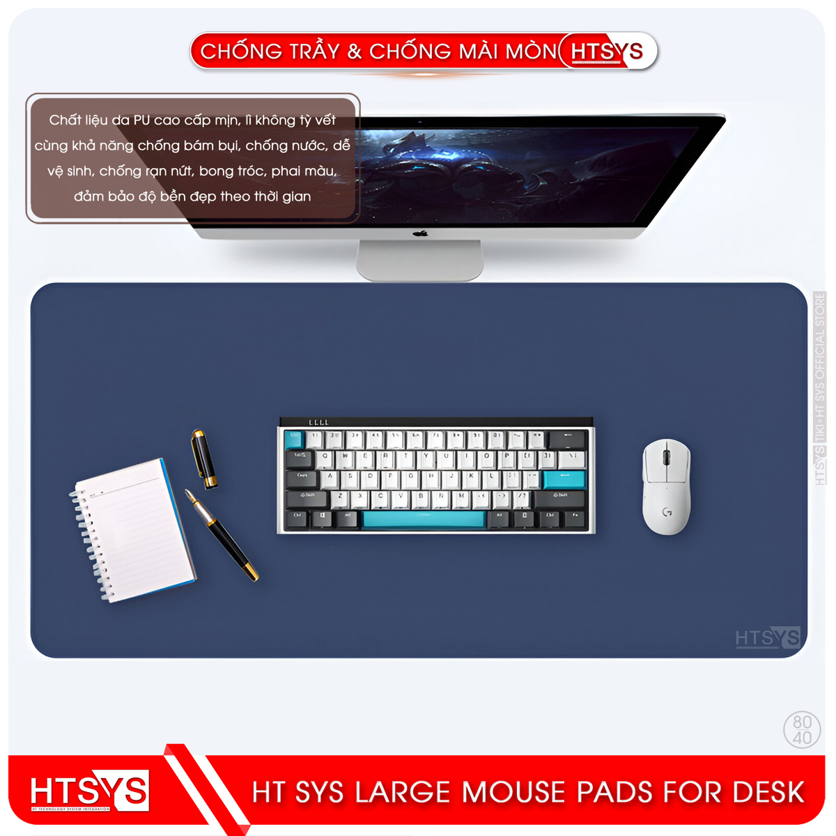Mua tại TiktokLót Chuột HT SYS Tấm Lót Chuột HT SYS – PU Cao Cấp, 2 Mặt Chống Trượt Và Nhăn | 80x40/90x45, 2mm