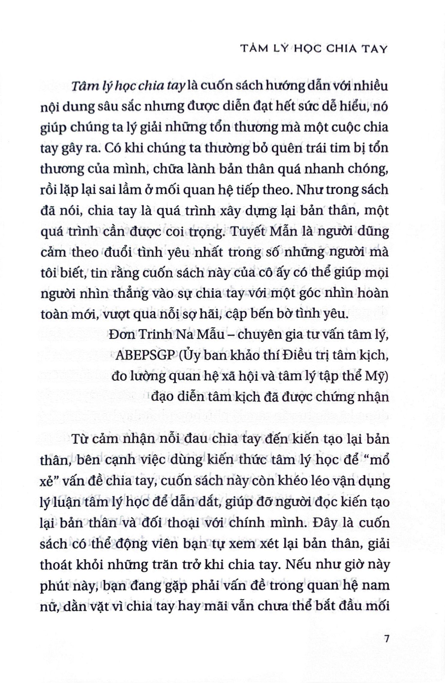 Mua tại TiktokTâm Lý Học Chia Tay Sau chia tay, ngoại tình, bạo hành, tranh cã làm sao để vượt qua thời kỳ đen tối, tái tạo bản thân? Cuốn sách này sẽ chữa lành bạn bằng lý trí, cung cấp cho bạn những kiến thức khoa học thần kinh liên quan, từng bước chỉ bạn cách nhìn nhận lại bản thân, người cũ cũng như mối quan hệ cũ, tránh cho bạn lý giải sai lầm dẫn đến xử lý sai lầm, cổ vũ bạn sống thật với chính m.ình, dũng cảm mưu cầu một tình yêu thân mật và dài lâu. Chia tay không phải là thảm họa, chia tay chính là thời cơ ngàn năm có một để bạn thêm trưởng thành.