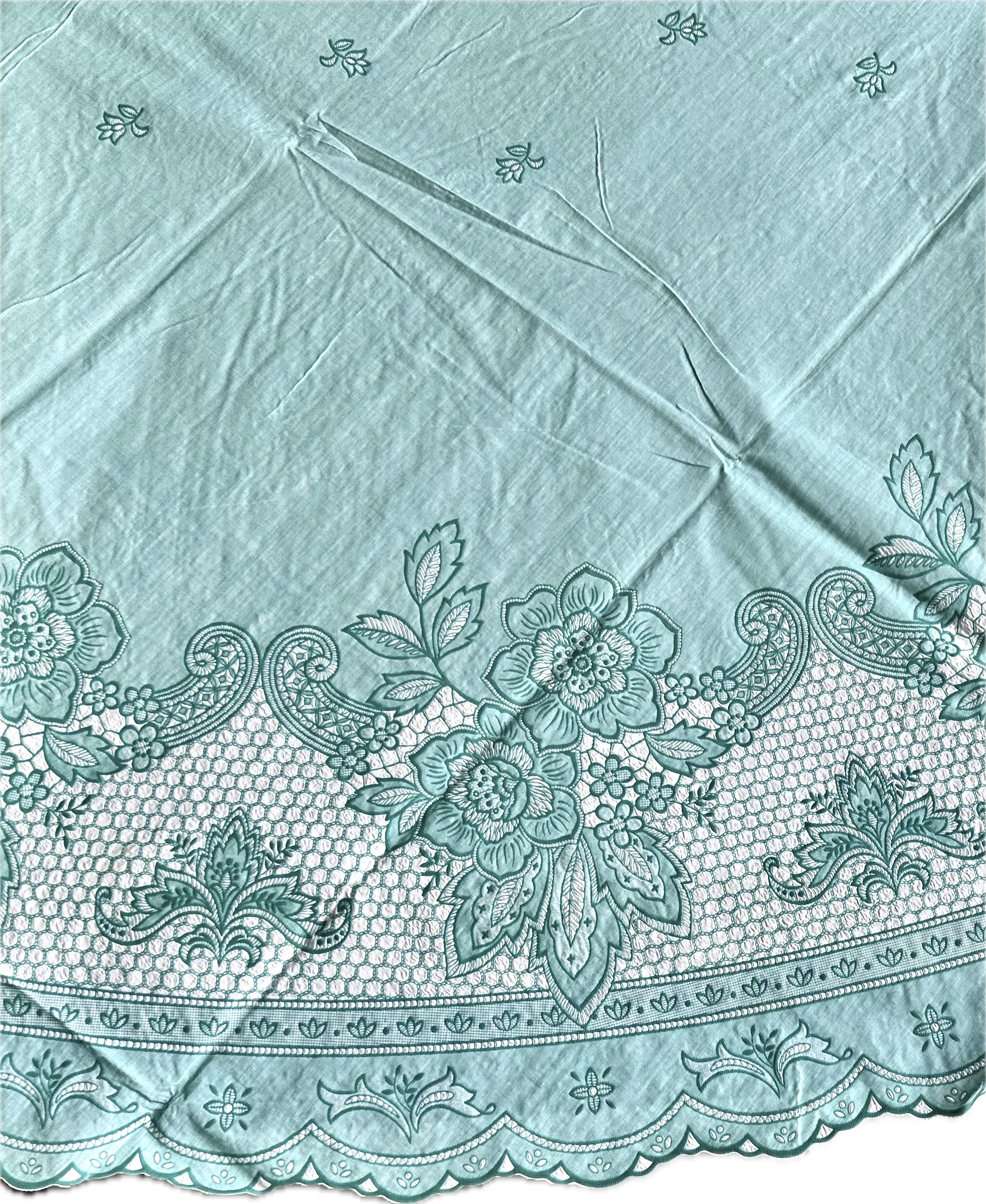 Khăn Trải Bàn PAULEE - FY 116 xanh ngọc kiểu dáng khăn hình chữ nhật kết hợp hoa văn, góp phần tô điểm cho không gian bàn ăn thêm sang trọng, hiện đại. Bề mặt có